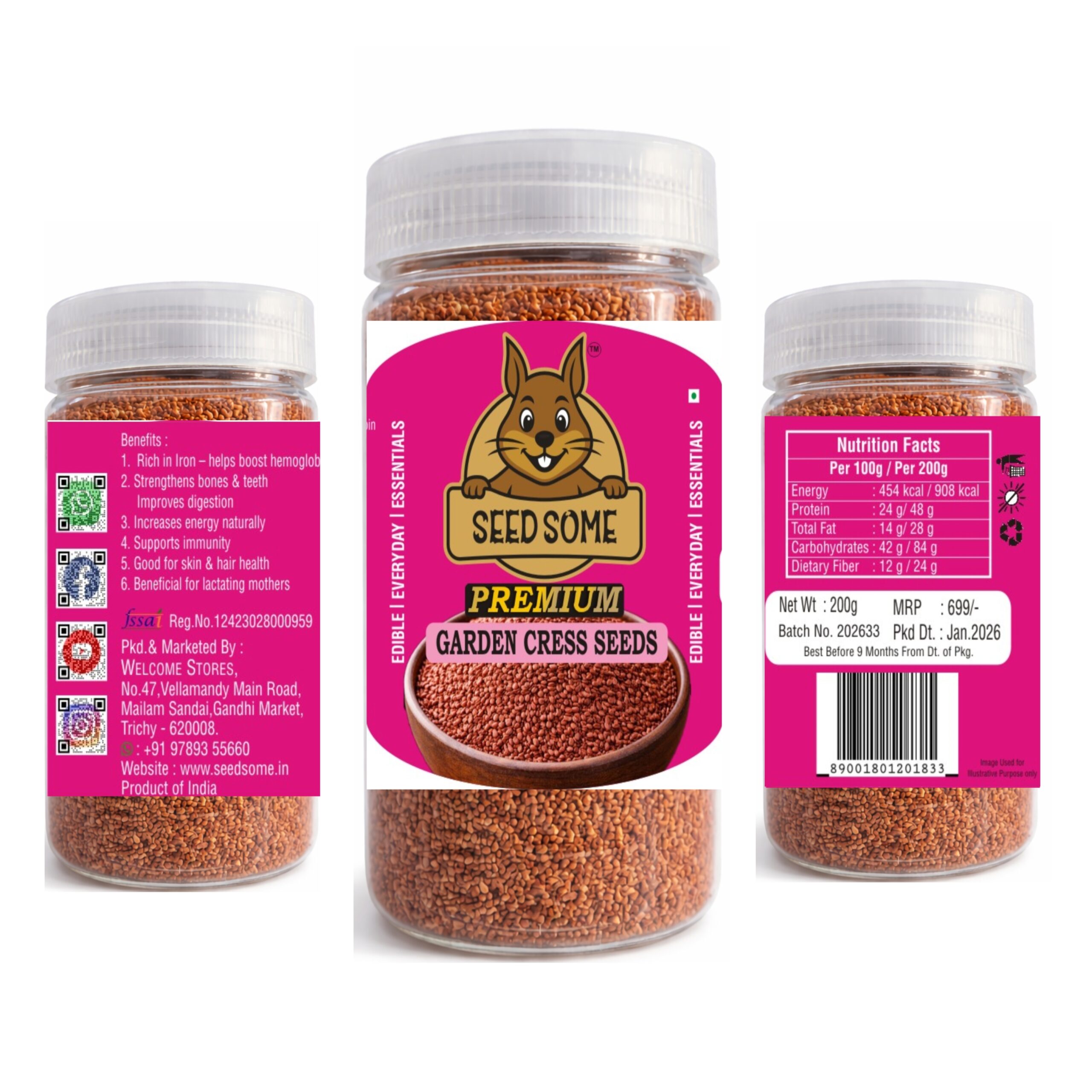 Halim Seeds, also known as Saliya Seeds or Garden Cress Seeds, are nutrient-rich superfoods packed with iron, calcium, protein, and fiber. Ideal for digestion, energy, and immunity support. Hygienically packed 200g seeds, perfect for smoothies, milk, salads, and daily wellness nutrition.
