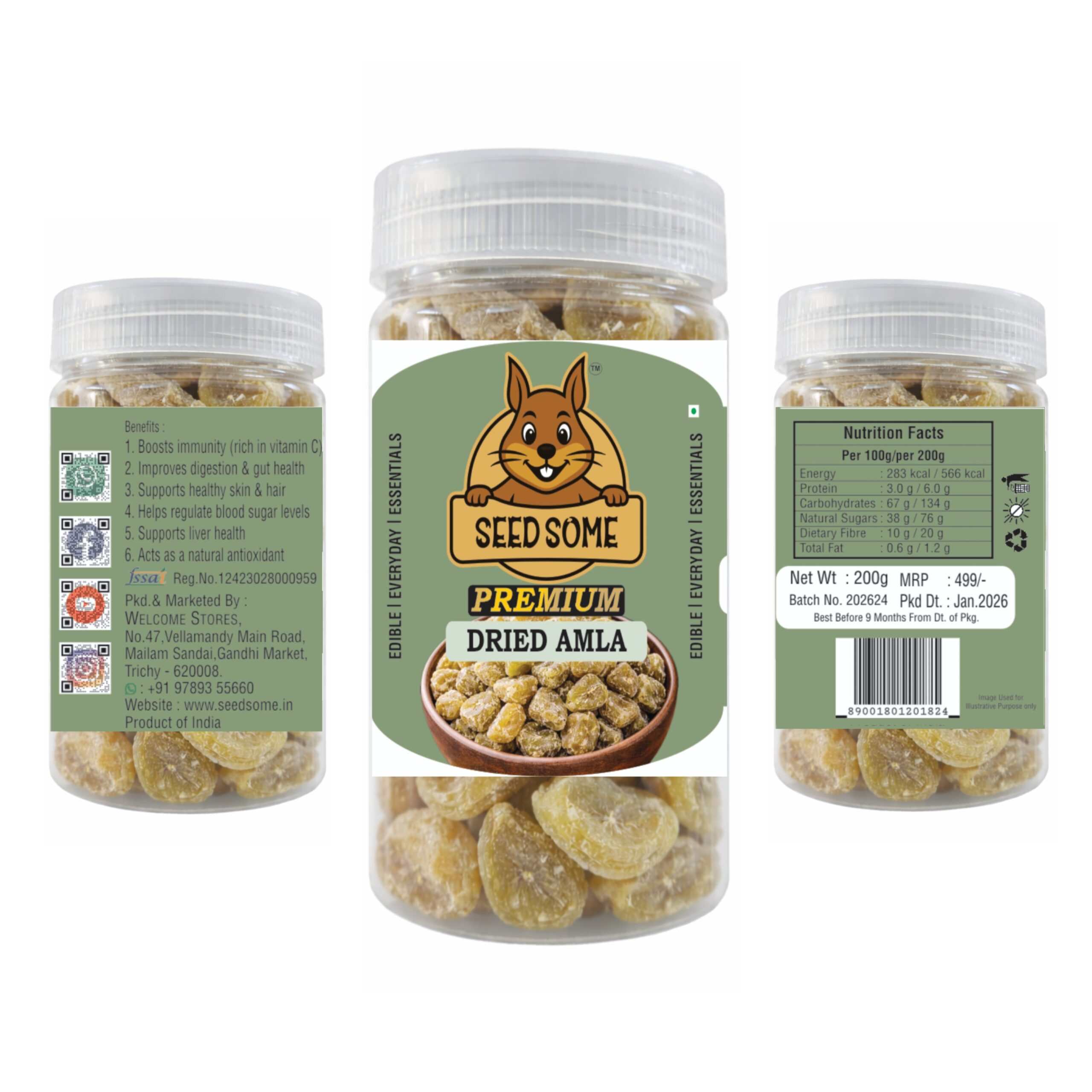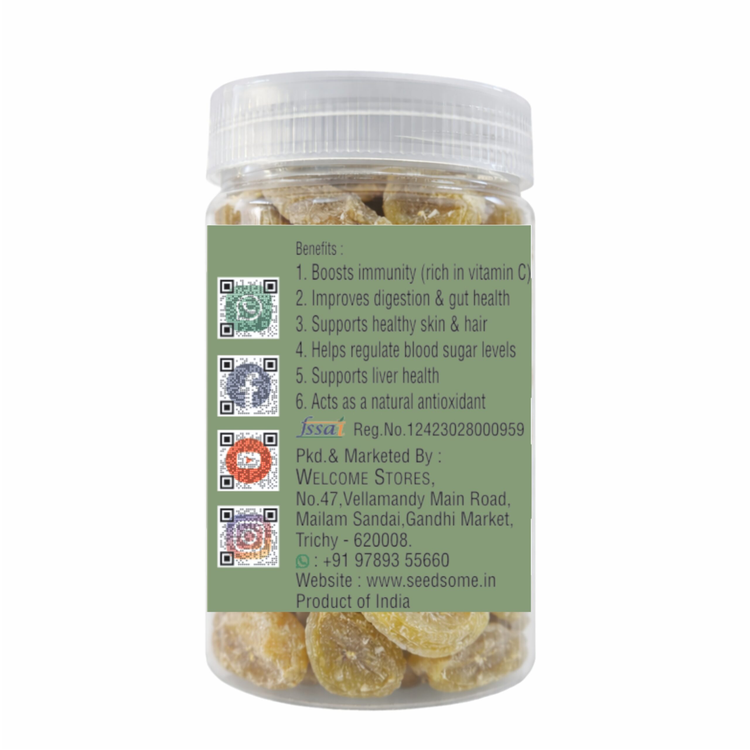 Experience the powerful health benefits of Seedsome Dried Amla 200g, made from carefully selected Indian gooseberries and hygienically dried to retain maximum nutrition and flavor. Amla is widely known for its high vitamin C content, antioxidants, and essential minerals that help boost immunity, improve digestion, and support overall wellness. These tangy and mildly sweet dried amla pieces are ideal for daily consumption and traditional health practices. They help promote healthy skin and hair, support metabolism, and enhance energy levels naturally. Perfect for healthy snacking, herbal preparations, teas, smoothies, and Ayurvedic use, Seedsome Dried Amla fits easily into a balanced lifestyle. Free from artificial colors, preservatives, and harmful additives, it offers pure and natural goodness in every bite. Hygienically packed for freshness, Seedsome Dried Amla is a smart choice for health-conscious individuals seeking natural immunity support and everyday nutrition.