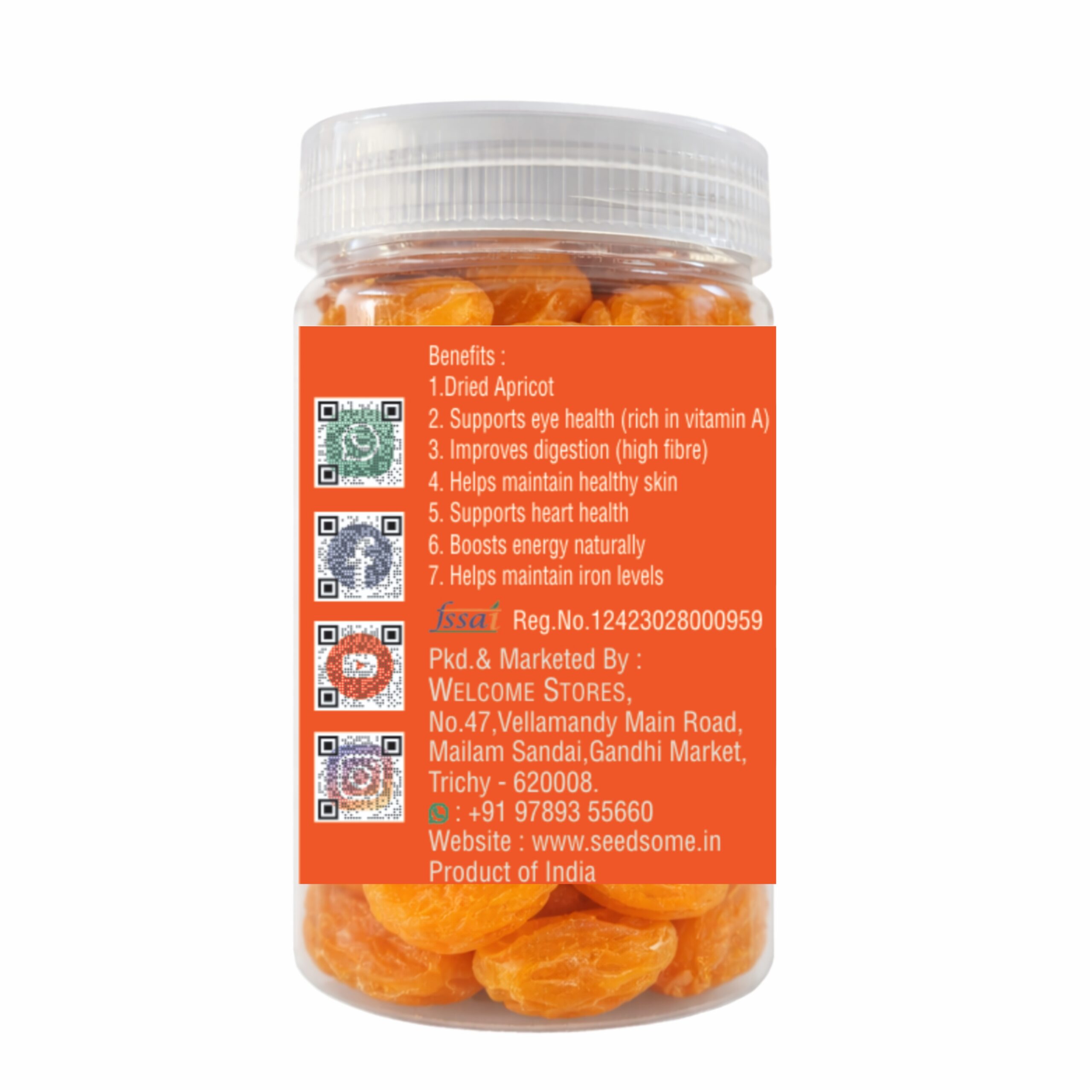 Enjoy the rich taste and natural goodness of Seedsome Dried Apricot 200g, made from carefully selected, premium-quality apricots and gently dried to preserve flavor and nutrition. These delicious dried apricots are rich in dietary fiber, antioxidants, vitamin A, iron, and essential minerals that support digestion, eye health, and overall wellness. Naturally sweet and soft in texture, they make a perfect healthy snack for kids and adults alike. Ideal for snacking, baking, desserts, cereals, smoothies, salads, and traditional recipes, Seedsome Dried Apricots add both taste and nutrition to your daily diet. Hygienically packed to retain freshness and quality, they contain no artificial colors, preservatives, or harmful additives. Perfect for fitness enthusiasts and health-conscious individuals, Seedsome Dried Apricots offer a convenient and tasty way to enjoy nutritious dry fruits every day.